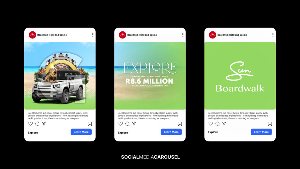 Centred on the word EXPLORE, this creative invites audiences to discover Gqeberha through colour, people, and experience. The large G anchors the city’s identity, while the energetic palette and varied characters reflect the many ways to enjoy the Boardwalk and the spirit of the city – from leisure to adventure.