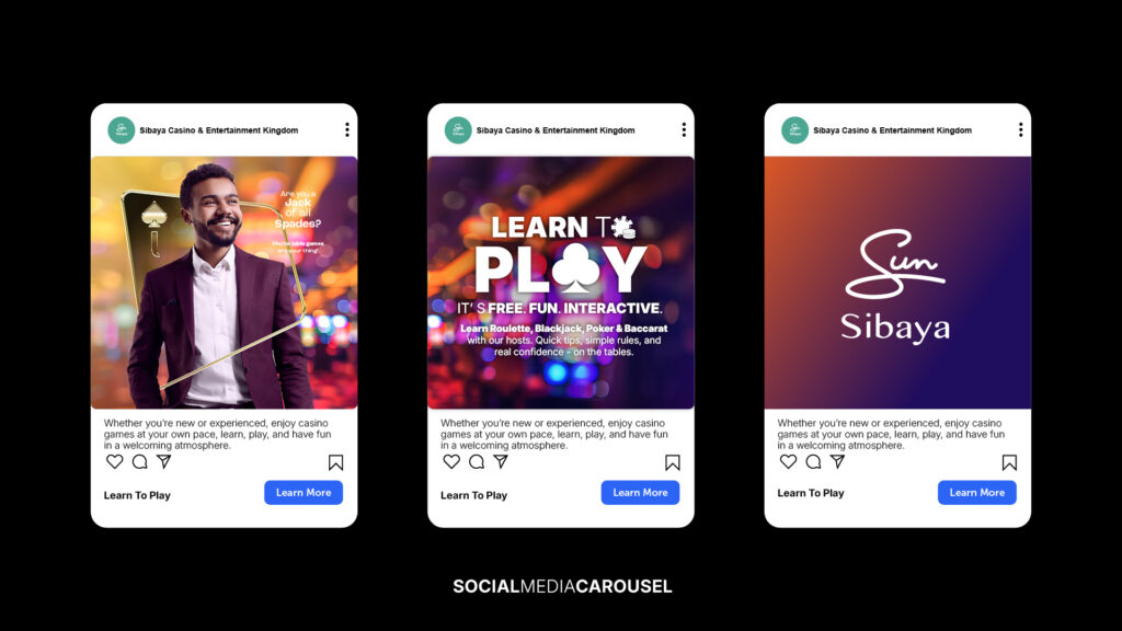 This creative uses real-life playing cards in a relaxed, familiar setting alongside warm, welcoming visuals, it shows that casino table games are for all levels – whether you’re new or experienced. The tone removes intimidation and invites guests to learn, play, and enjoy the experience in a social, supportive environment.