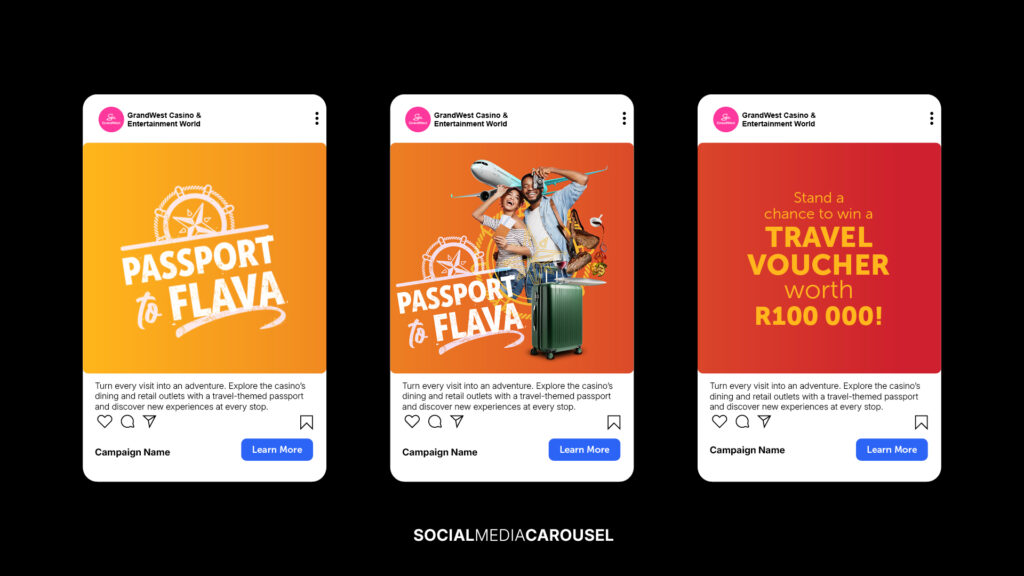 Using a travel-themed “passport” to highlight the casino’s dining and retail experiences. The vibrant visuals and the passport mechanic, encourages guests to explore multiple outlets, turning every visit into a journey of discovery and adventure within the complex.