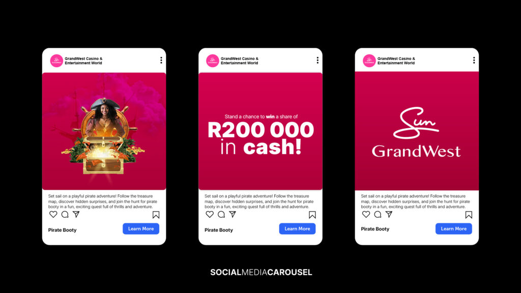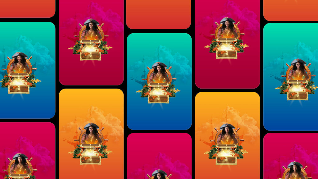 This creative brings a playful pirate adventure to life, using a treasure-map aesthetic and the headline “PIRATES BOOTY” to turn the promotion into a fun quest. Rich gold and black visuals evoke hidden treasure, while the multi-stage journey feels like an exciting hunt, inviting players to explore, discover, and enjoy the thrill of the adventure.